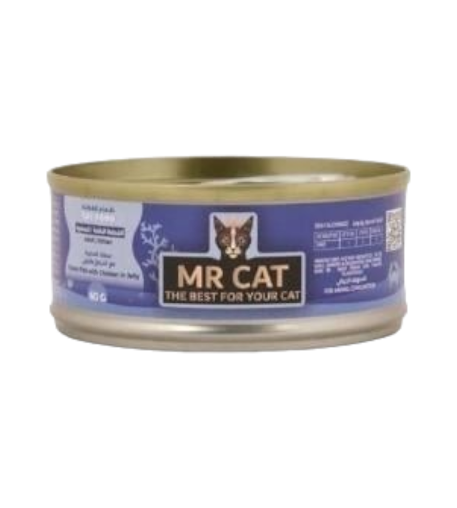 ماكريل27 %, تونة 5 % , دجاج 3 % , هلام (ماء , مسحوق الجيلي) 65% , المجموع: 100%